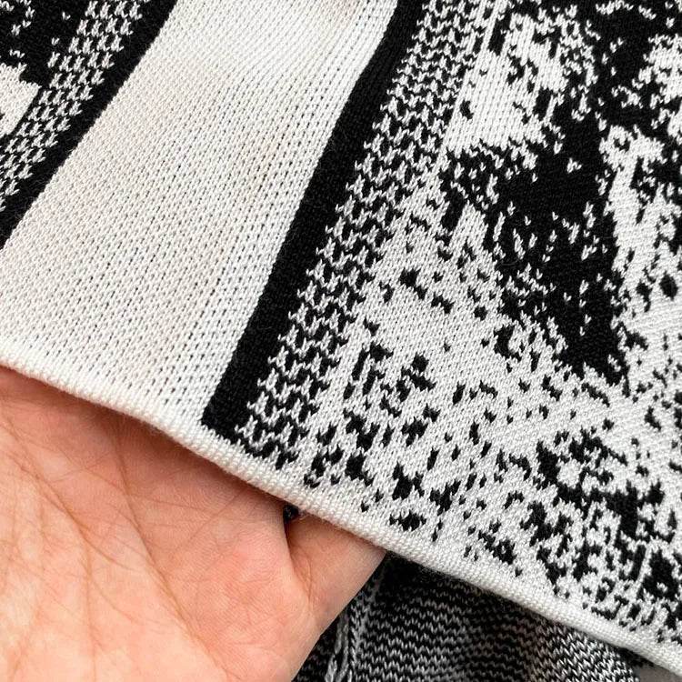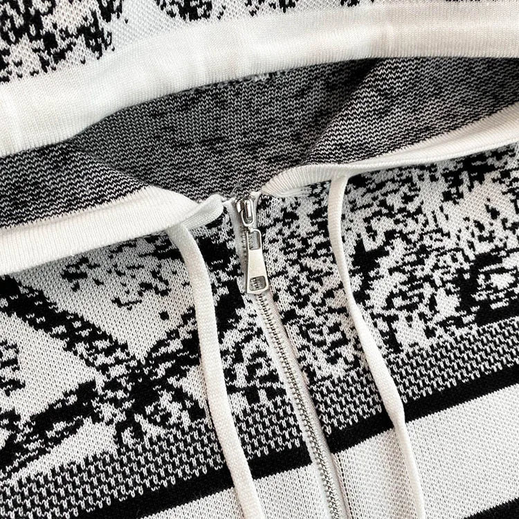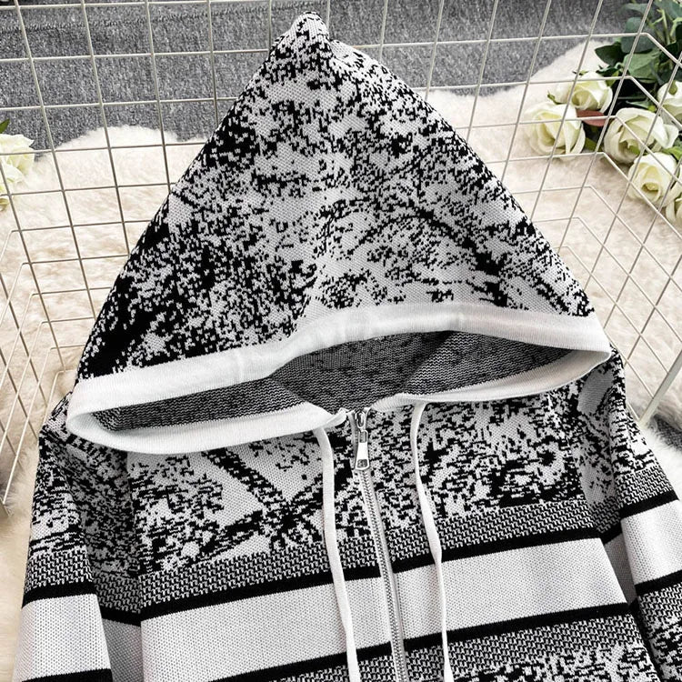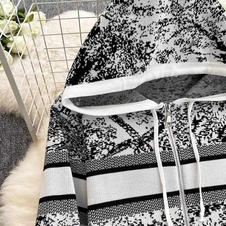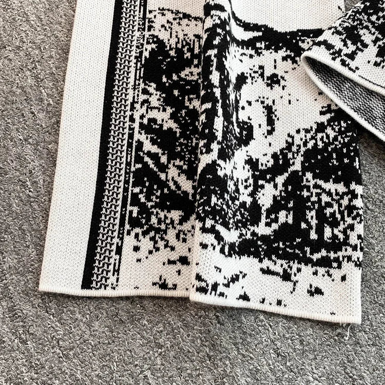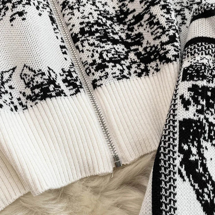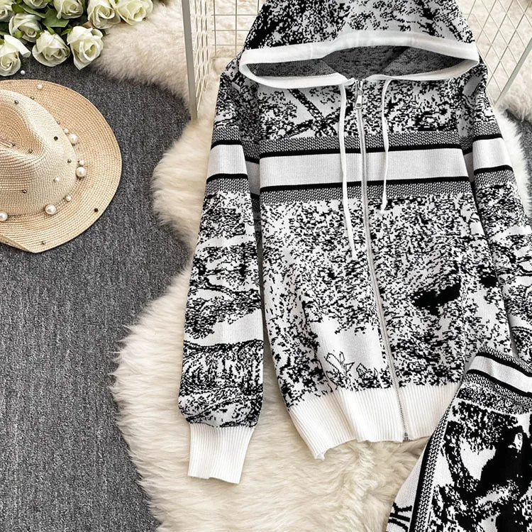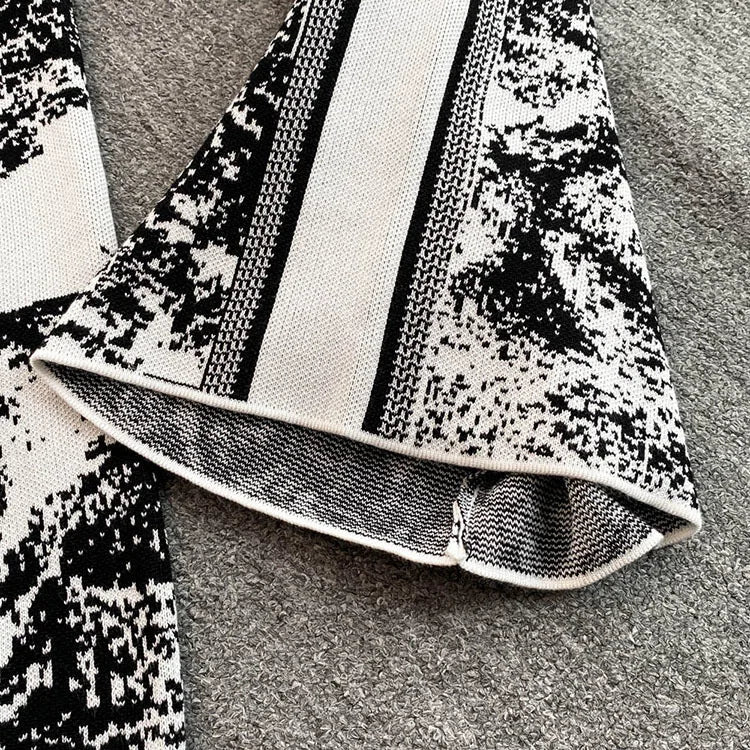 Autumn Winter New Temperament Crew Neck Slim Knit Sweater Loose Trousers Animal Pattern Printed Two-Piece Suit