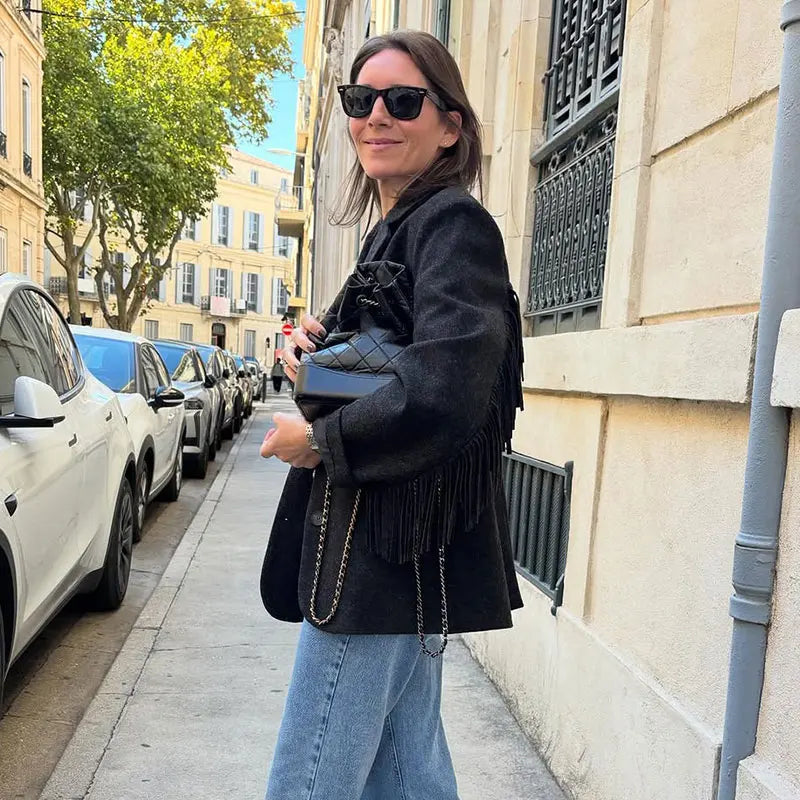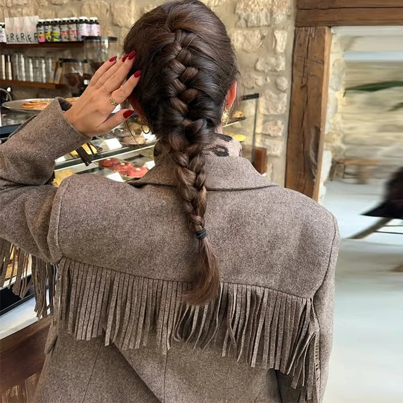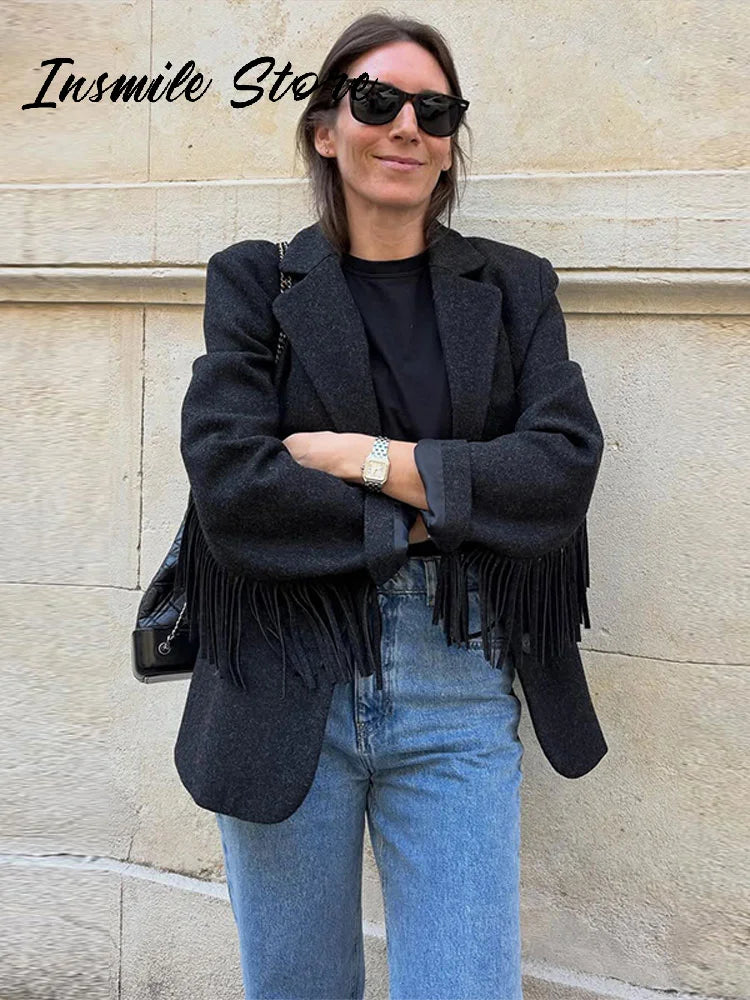Fashion Women's Tassel Solid Blazer Jacket Lapel Full Sleeve Casual Coat 2026 Spring Autumn Lady Elegant Street Lady Outwear New
