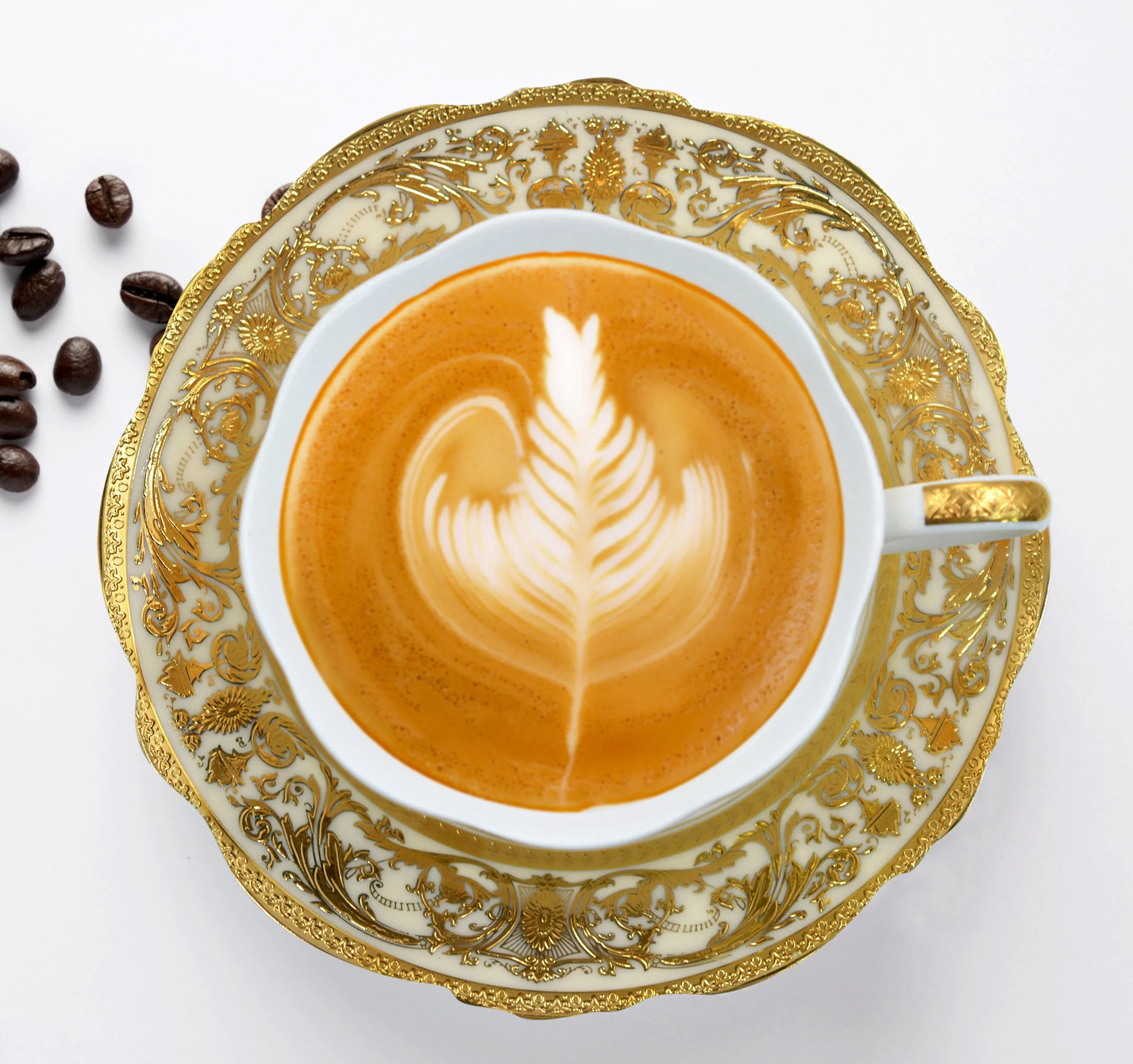 Karosa 17pcs Embossed Gold Porcelain Bone China 200cc 7.5 OZ Coffee Tea Cup Luxury Afternoon Tea Set