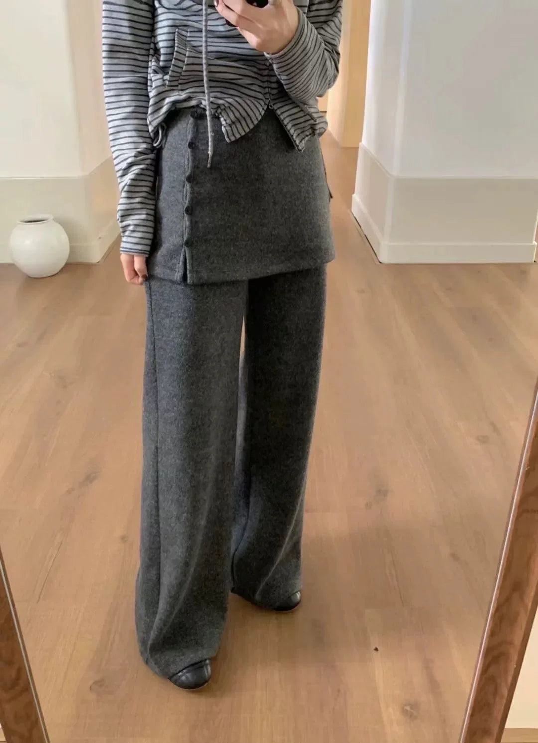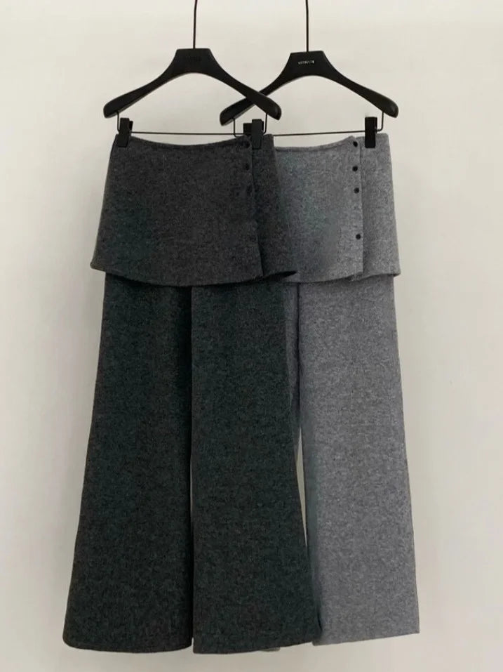 Korean Sle Women's Knitted Flared Casual Pants High Waist Autumn Winter New Faion Trendy Long Trousers Comfortable Design